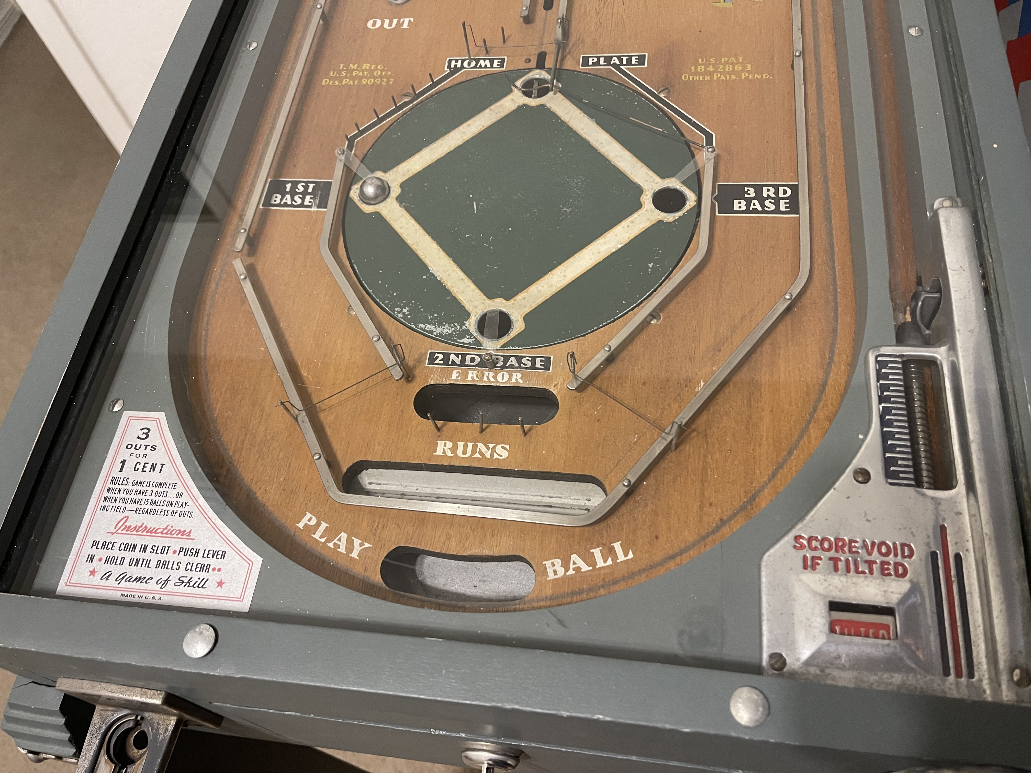 Working coin-mech set to 1 penny for 15 balls or 3 outs, whichever comes first.
